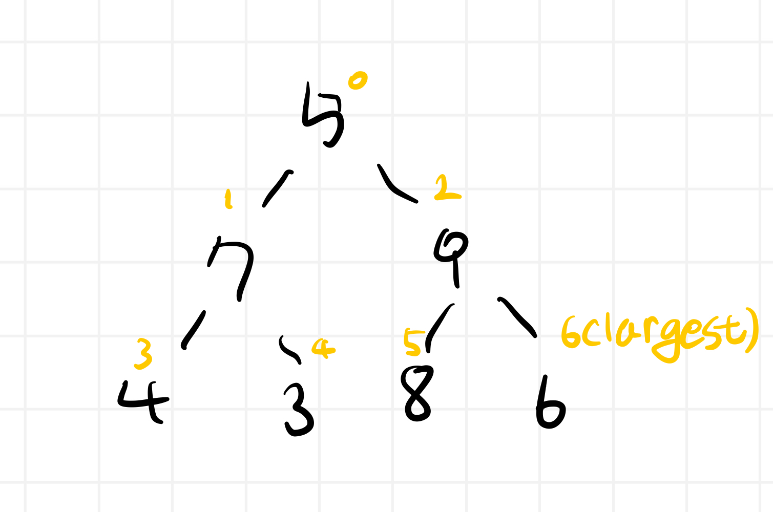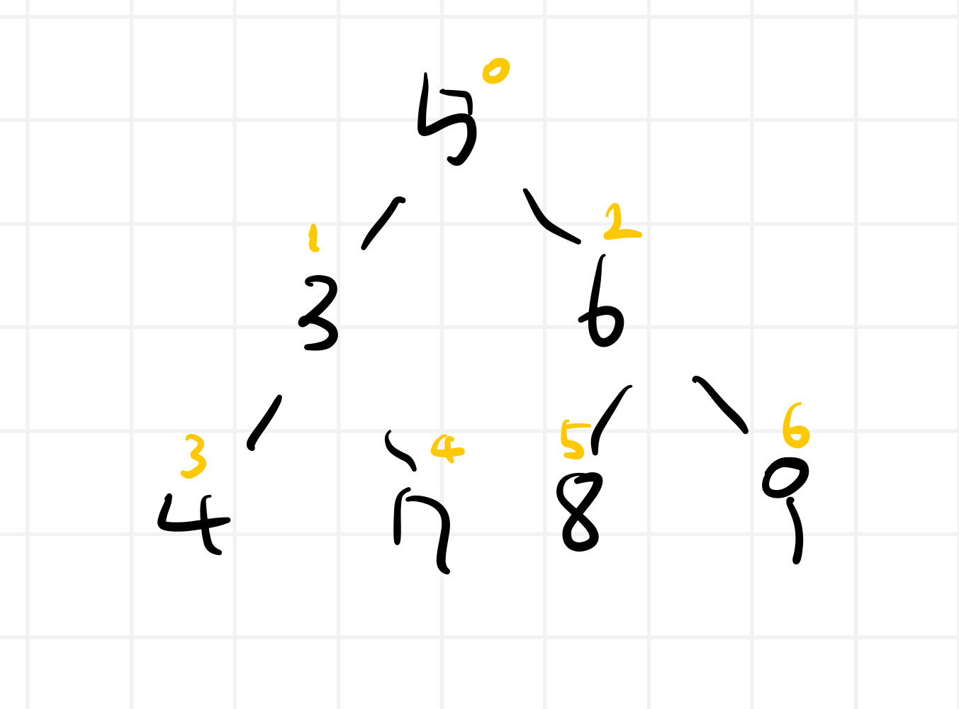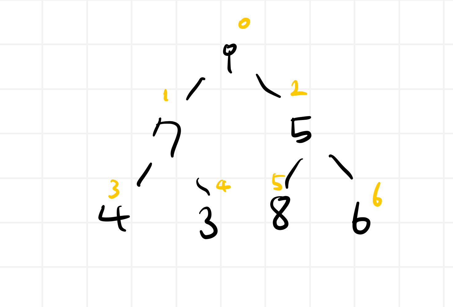 따라서 위와 같은 이진 트리는 [9, 7, 8, 4, 3, 5, 6]으로 바꿀 수 있다.