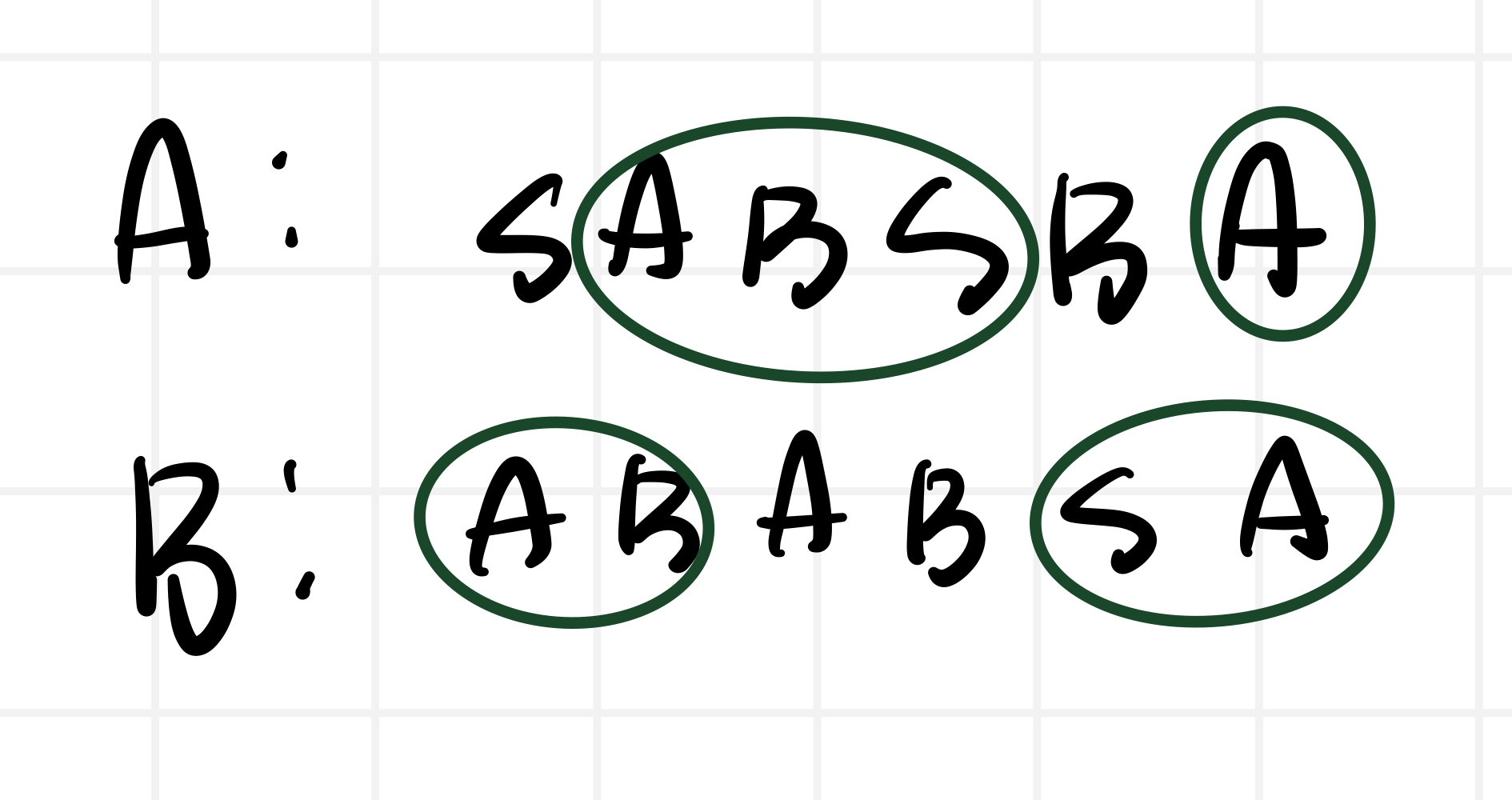 A를 B로 바꾸는 것이 목적이므로, 다른 부분인 S와 B를 삭제하고, B와 같은 위치에 A와 B를 삽입하면 된다.