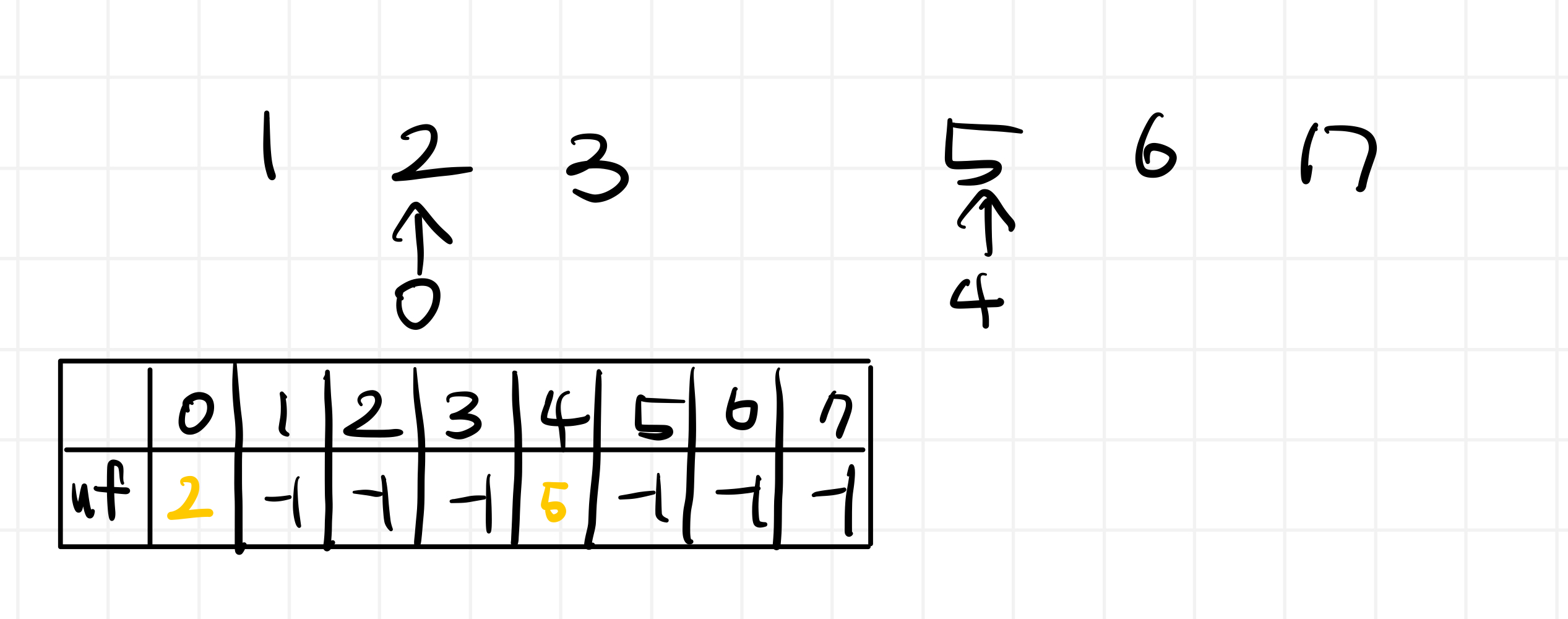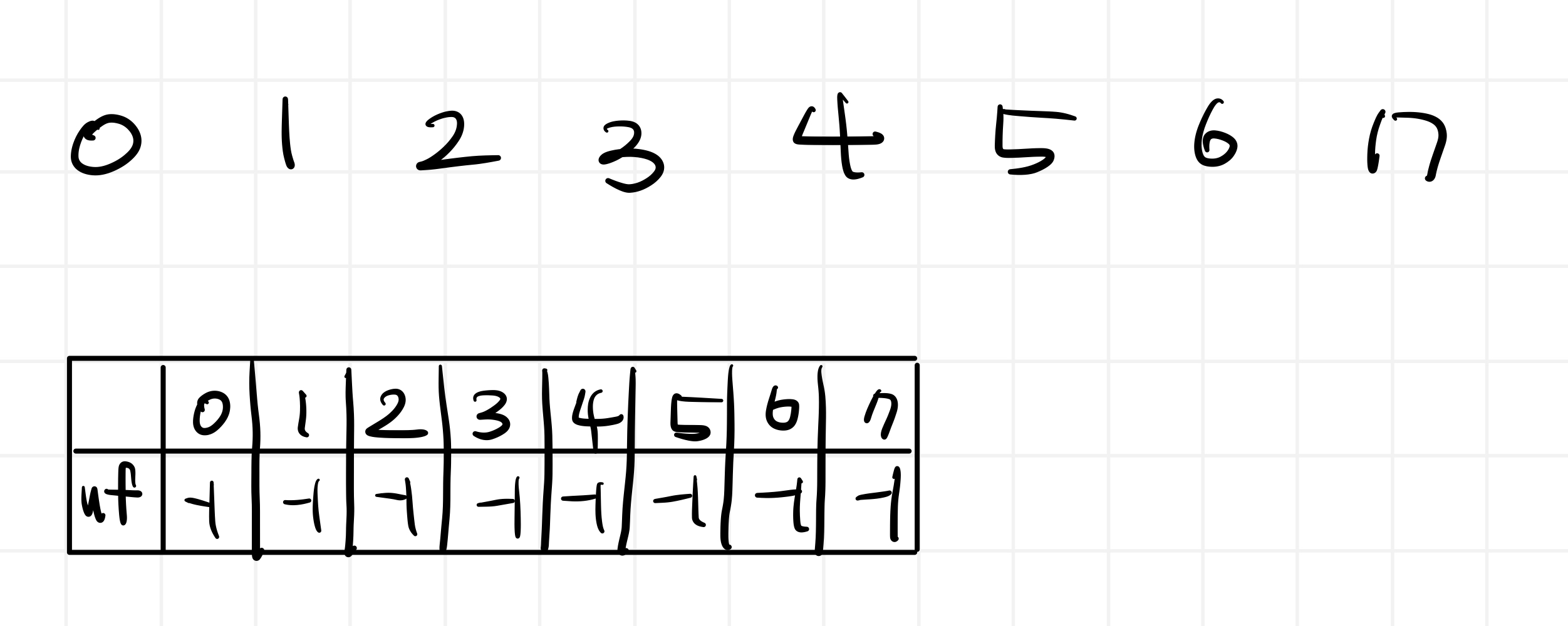 uf 배열은 자신의 부모 노드를 원소로 가지는 배열이다. 처음에는 부모, 자식 관계가 없으니 -1로 초기화한다.